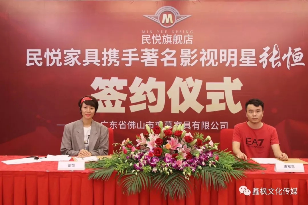 近日民悅家具品牌攜張恒在北京希爾頓酒店舉行簽約儀式。
