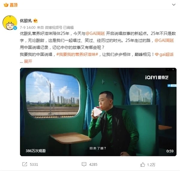 GAI周延官宣代言國民品牌優(yōu)酸乳 領銜提升中文說唱新高度