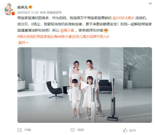 與品牌調(diào)性高度契合的代言,可以實現(xiàn)明星對品牌的加成效果最大化。陳小春和應(yīng)采兒是娛樂圈出了名的模范夫妻,同時也組成了一個幸福的四口之家,不管是早年演唱會上二人的甜蜜互動,還是《爸爸去哪兒》中二人帶娃名場面,都讓許多網(wǎng)友印象深刻。春采夫婦所體現(xiàn)的超高國民知名度、家庭幸福感以及“帶娃家庭”標(biāo)簽與滴水“更適合帶娃家庭”品牌定位和理念相契合,二者聯(lián)手將在清潔家電領(lǐng)域開啟嶄新篇章,解鎖帶娃家居清潔體驗。
