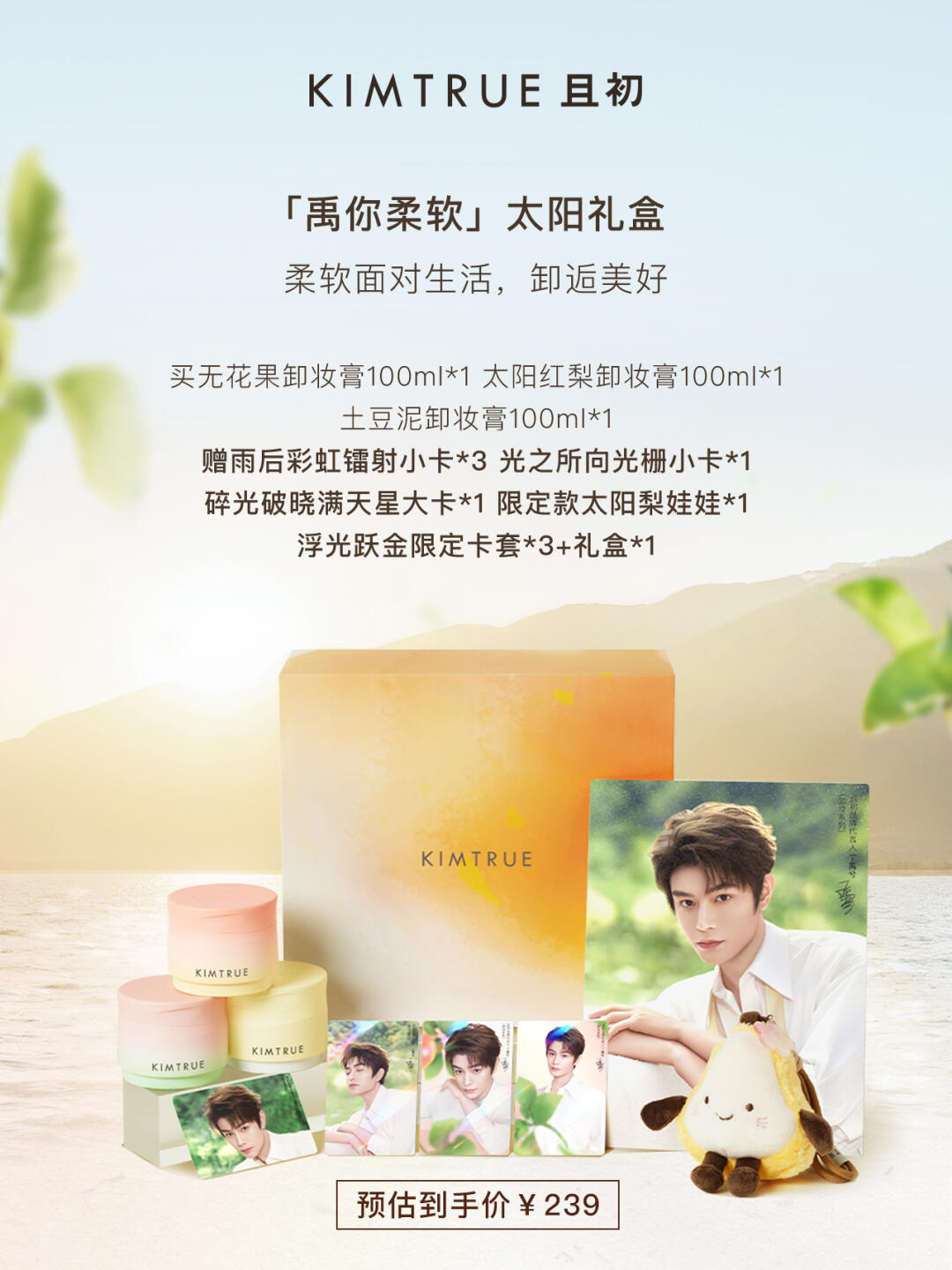 且初官宣丁禹兮(明星代言公司)為品牌(卸妝系列)代言人,系列包含「無花果卸妝膏」「太陽紅梨卸妝膏」「土豆泥卸妝膏」等產(chǎn)品,購買制定產(chǎn)品可獲得代言人定制精美周邊,此次周邊包含代言人小卡和限定太陽梨娃娃,希望一起「禹」你同行。