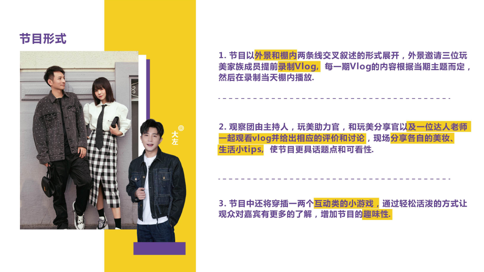 2016年11月,湖南衛(wèi)視主持人李維嘉強勢加盟,與王小牙玩美兄妹合體,在兩人的主持下玩美咖進入明星國際時尚生活秀新模式 。