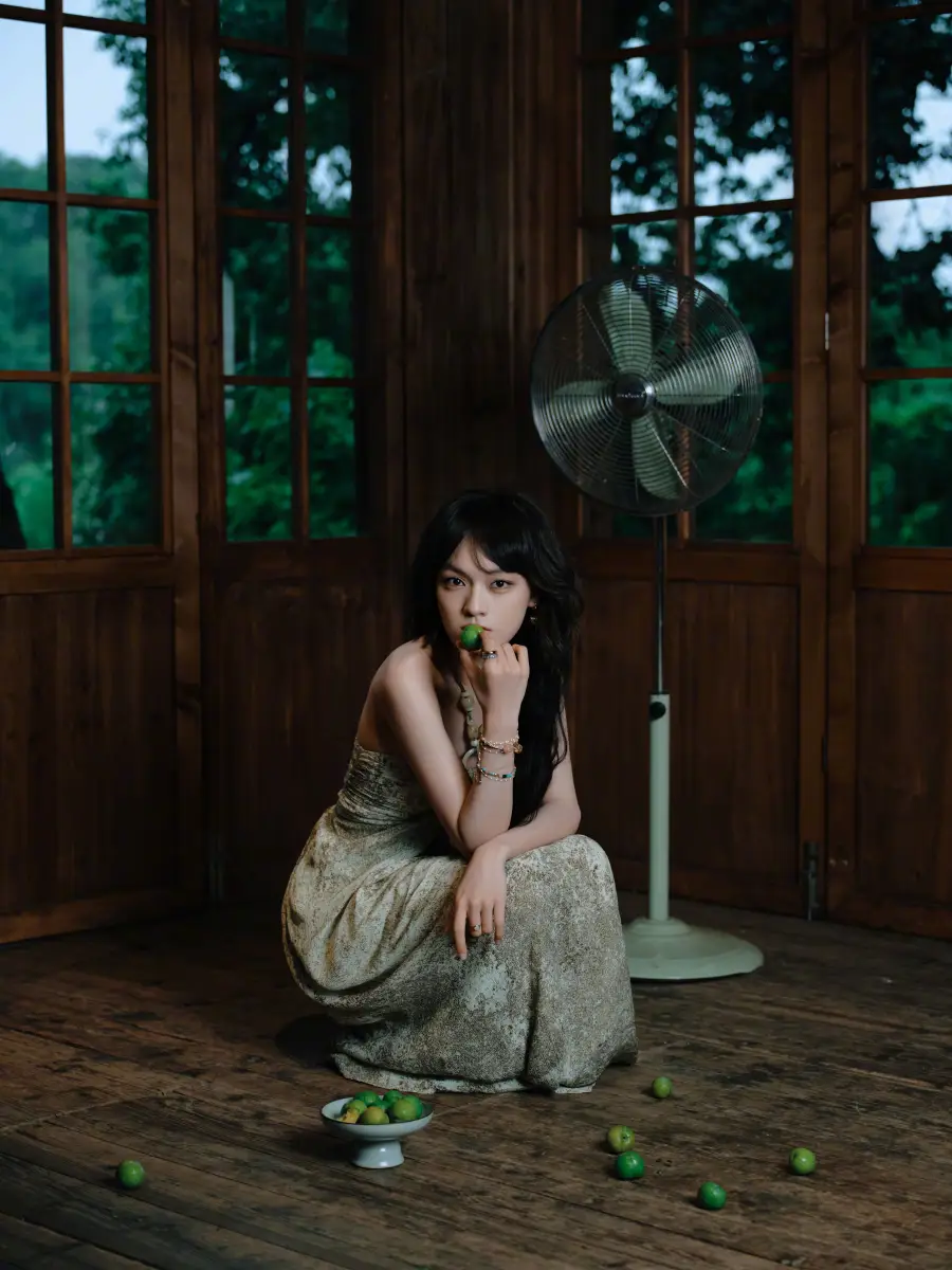 文淇穿印花串珠裙搭配長卷發(fā) 氣質(zhì)清冷文藝范十足