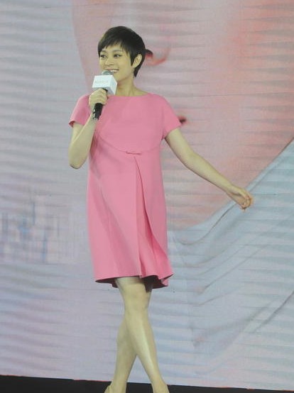2014年02月19日上海,19日,孫儷粉裙出席活動,剛剛宣布再次懷孕的孫儷不懼危險踩高跟鞋亮相。