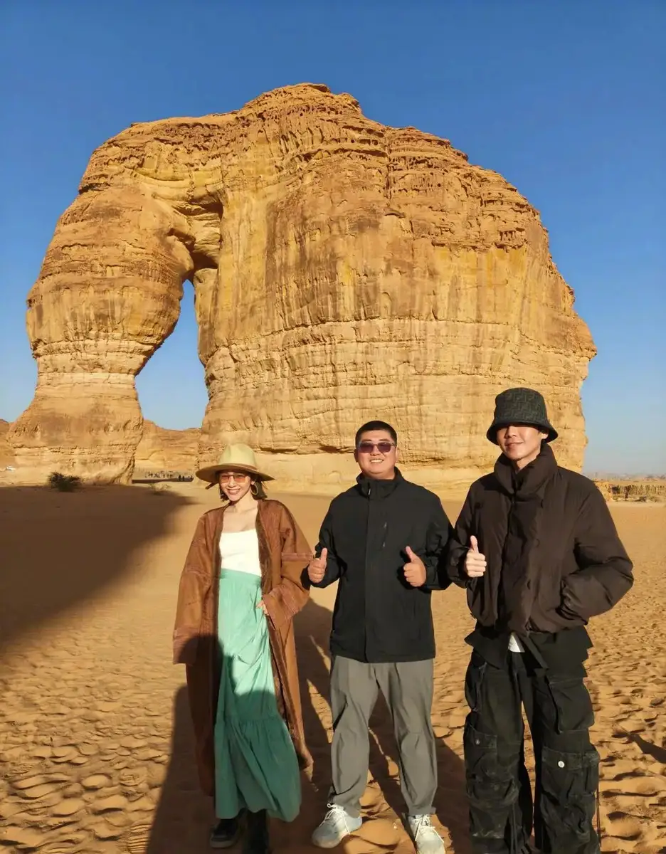 11日,《花少5》里的導游馬哥曬出與張若昀、唐藝昕夫婦的合照,并表示自己2025年在沙特阿拉伯埃爾奧拉有幸接待了張若昀、唐藝昕夫婦,還夸贊二人都超級好。