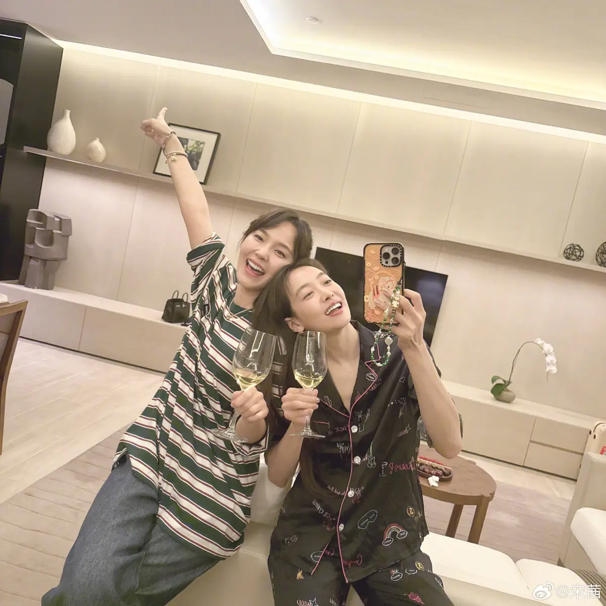 近日,宋茜在社交媒體平臺上曬與張佳寧的合照,倆人對鏡自拍,嘟嘴賣萌超可愛。