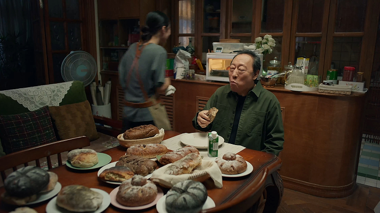 在影片中,倪大紅老師扮演了一位不善表達的父親,為新來的姑爺送上搟面杖、成為敢于面對蟑螂的唯一前線、面無表情的吃下女兒做的干巴面包......但這一切都是表象,爸爸內心的 OS 早已出賣他深愛孩子的事實。都說父愛如山、父愛無言,但這并不意味著爸爸的愛比任何一個人少,伊利希望借助短片將那些未曾開口的愛表達出來,正如品牌牛奶無聲滋養(yǎng)著無數(shù)消費者一樣,父親也以另一種方式愛著大家。