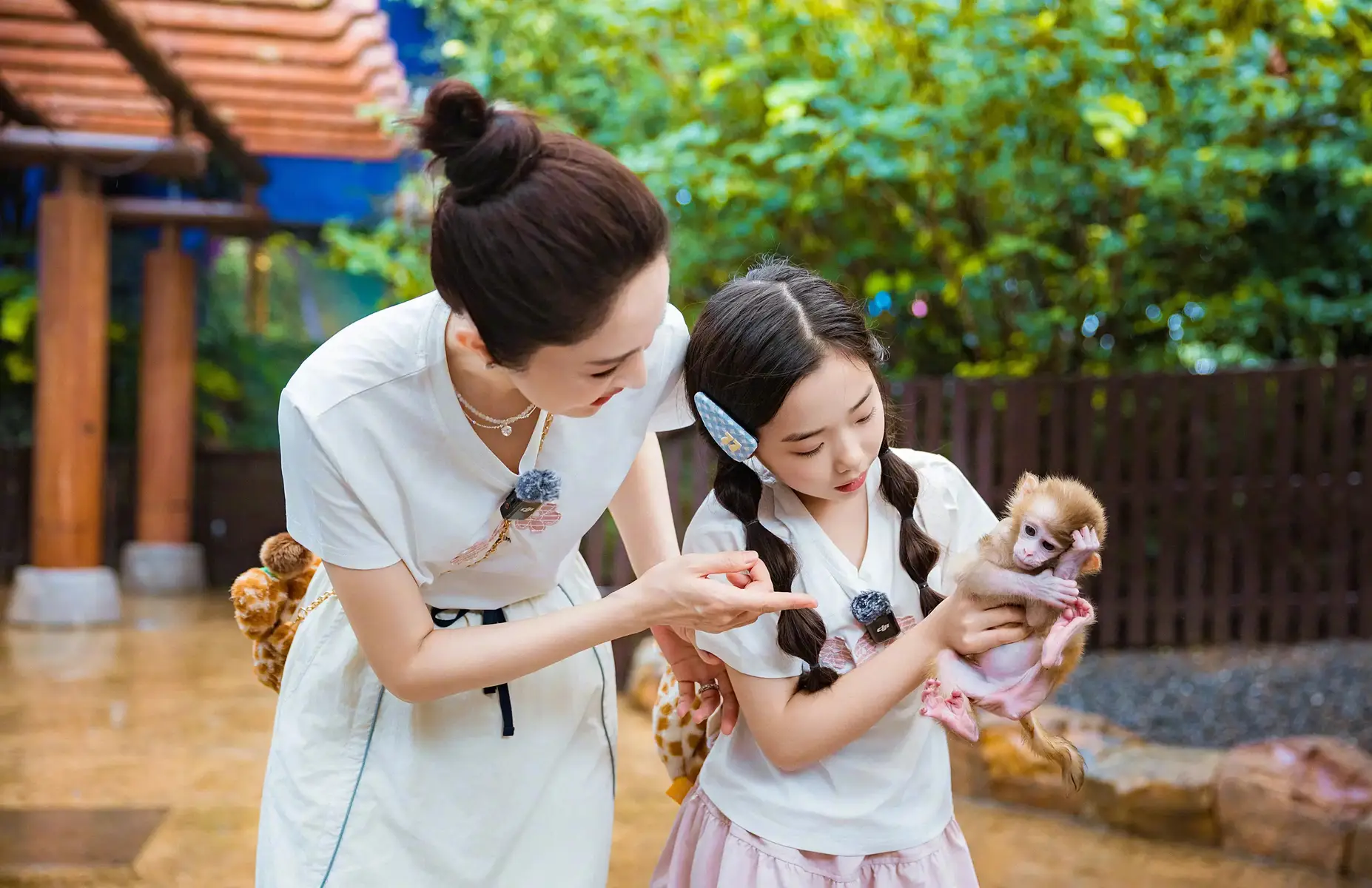 8月8日,董璇(明星經紀公司)在社交平臺分享了與女兒小酒窩一起去游樂園玩耍的照片,照片里小酒窩與小動物親密互動,母女氛圍超好。