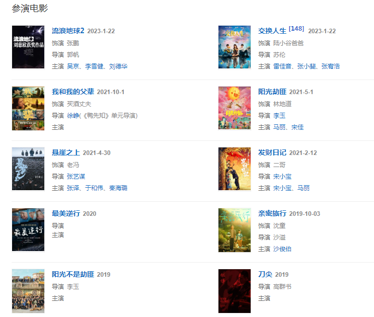 代表作品:武林外傳、炊事班的故事、血戰(zhàn)長(zhǎng)空、結(jié)婚前規(guī)則、青盲、滲透、秀才遇到兵、甜蜜蜜、平凡歲月