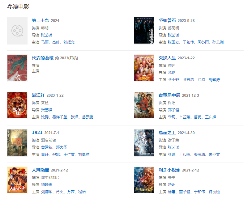 代表作品:黃金大劫案、超時(shí)空同居、刺殺小說(shuō)家、長(zhǎng)安十二時(shí)辰、和平飯店、繡春刀Ⅱ:修羅戰(zhàn)場(chǎng)、我的前半生、人世間