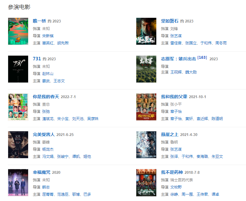 2009年,在齊星執(zhí)導(dǎo)的電視劇《愛在蒼茫大地》中飾演膏藥。