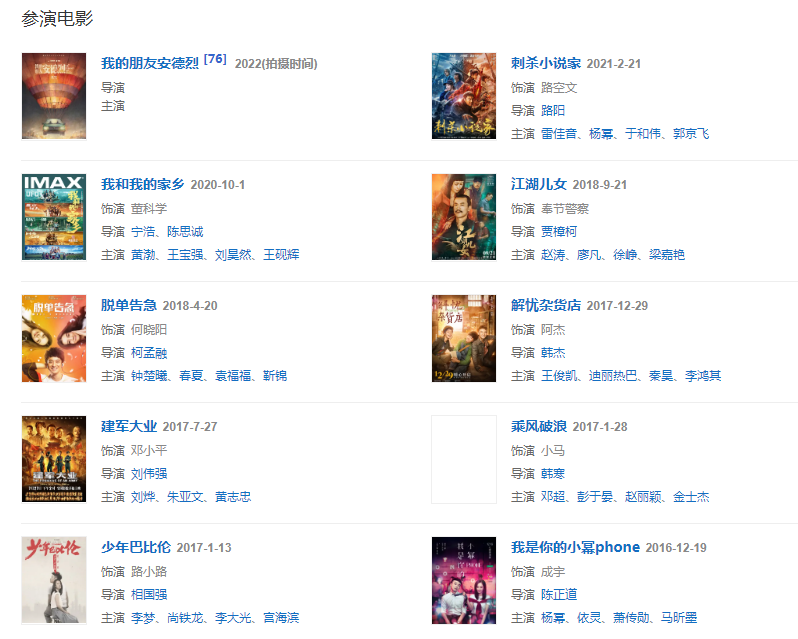 代表作品:青春派、山河故人、大江大河、六弄咖啡館、少年班、乘風(fēng)破浪、流金歲月、恰好是少年