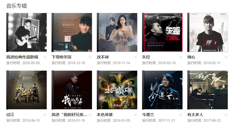 2007116日,高進(jìn)發(fā)行首張創(chuàng)作專輯《江山》,歌曲《江山》在中國(guó)TOP排行榜獲得冠軍。