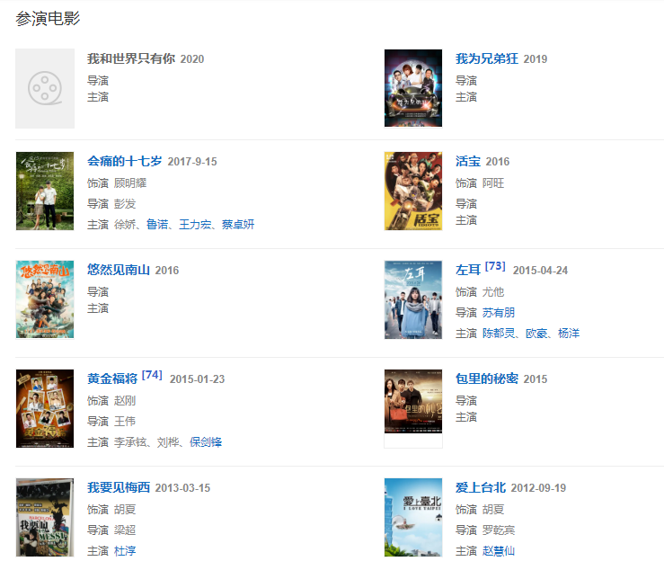 20148月在蘇有朋導(dǎo)演電影處女作《左耳》中飾演“尤他”。