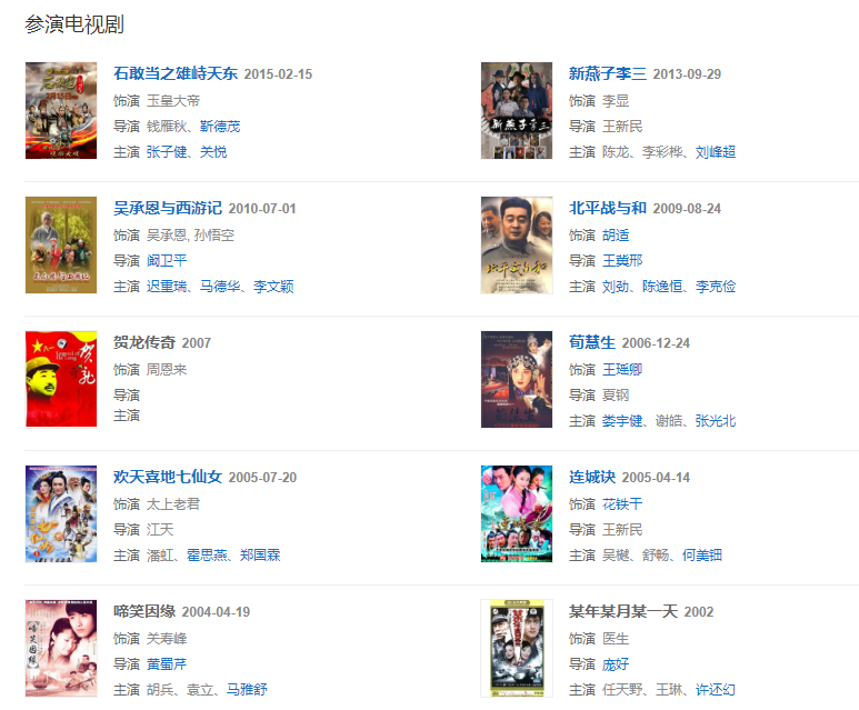 20076月,在古裝劇《吳承恩與西游記》中同時(shí)飾演吳承恩和孫悟空兩個(gè)角色。