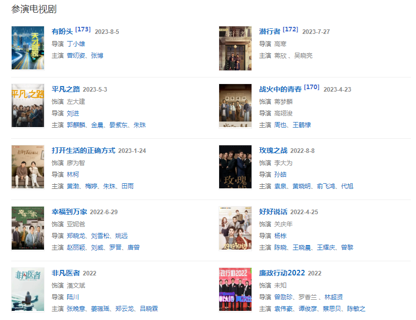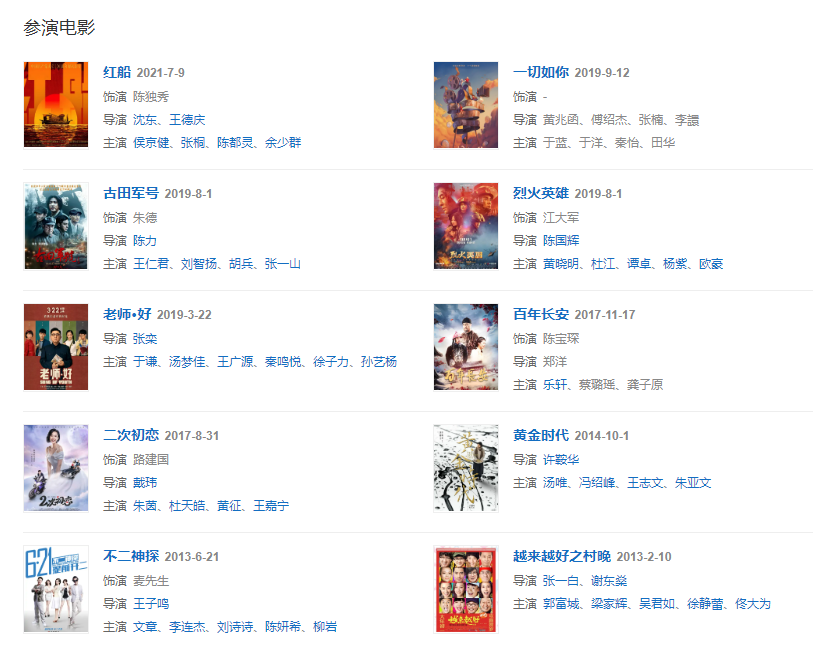 2009年主演新中國成立六十周年獻禮片《咱爸咱媽六十年》。