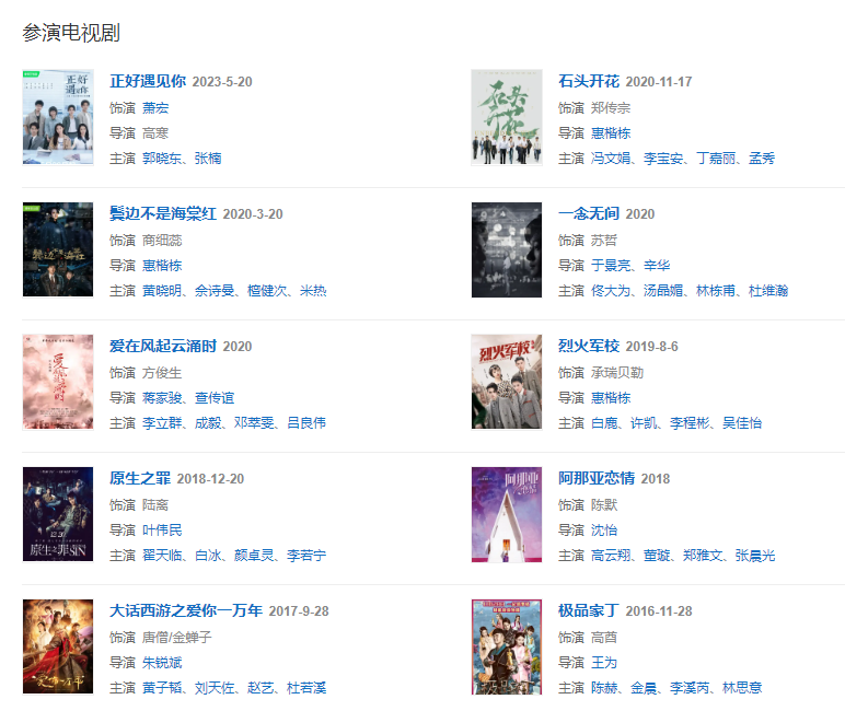 代表作品麻雀、夏洛特?zé)?、他來了,請閉眼、龍門鏢局、鬢邊不是海棠紅、揚(yáng)名立萬