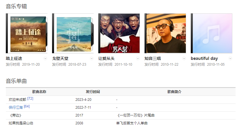 代表作品別誤會、愛不愛我、粉墨人生、相信自己、如果我是梁山伯、奮斗、門·第、還是夫妻