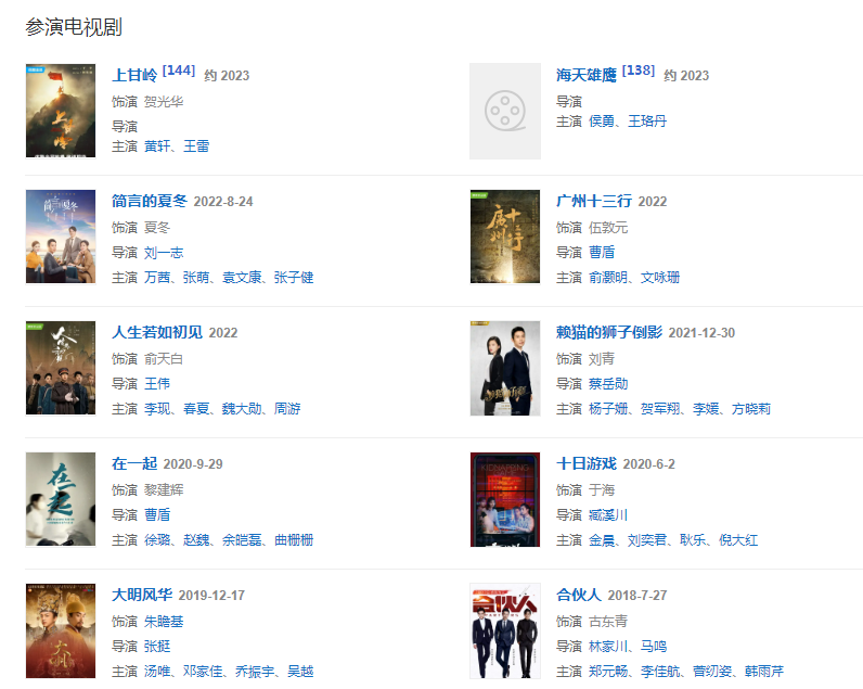 代表作品:闖關(guān)東、遠去的飛鷹、我們的法蘭西歲月、建軍大業(yè)、紅高粱、陸垚知馬俐、北上廣不相信眼淚、愛在蒼茫大地、大明風(fēng)華、漂洋過海來看你、在一起主要成就:2011年第14屆上海國際電影節(jié)亞洲新晉演員獎