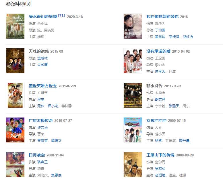 2008年主演的電視劇《天仙配》獲得中央電視臺電視劇頻道的年度收視冠軍 。