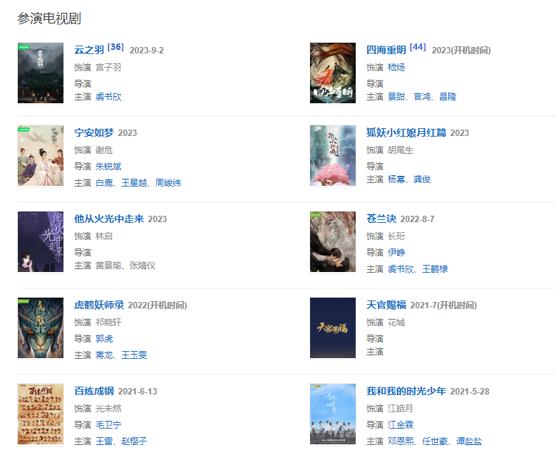 2022,主演古裝言情劇《寧安如夢》;8月,憑借古裝仙俠劇《蒼蘭訣》戰(zhàn)神長珩一角嶄露頭角。