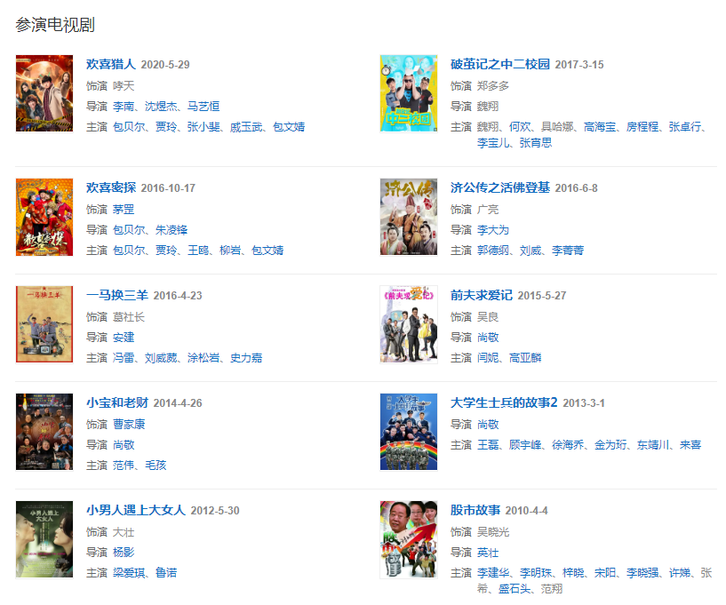 2016年在《濟公傳之活佛登基》中飾演廣亮。同年以助演身份參加《歡樂喜劇人第二季》。