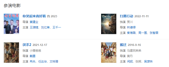 2022年,主演劇情電影《你笑起來真好看》 ;同年,出演的犯罪動作電影《掃黑行動》上映。