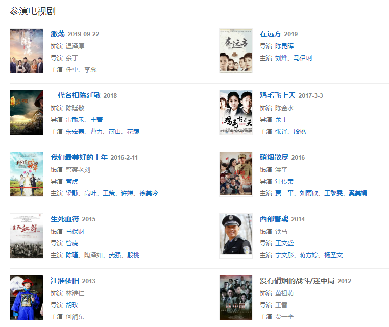 2019年,主演的電視劇《激蕩》在湖南衛(wèi)視播出,劇中飾演溫澤厚。