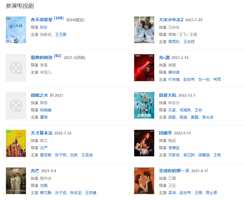代表作品:你好,舊時光、大宋少年志、冰糖燉雪梨、以家人之名、變成你的那一天