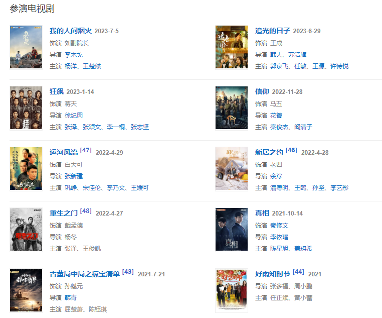 代表作品:人民的名義、大秦帝國之崛起、地道英雄、春桃的戰(zhàn)爭、?;丶铱纯?、關中秘事、冒牌英雄、金水橋邊