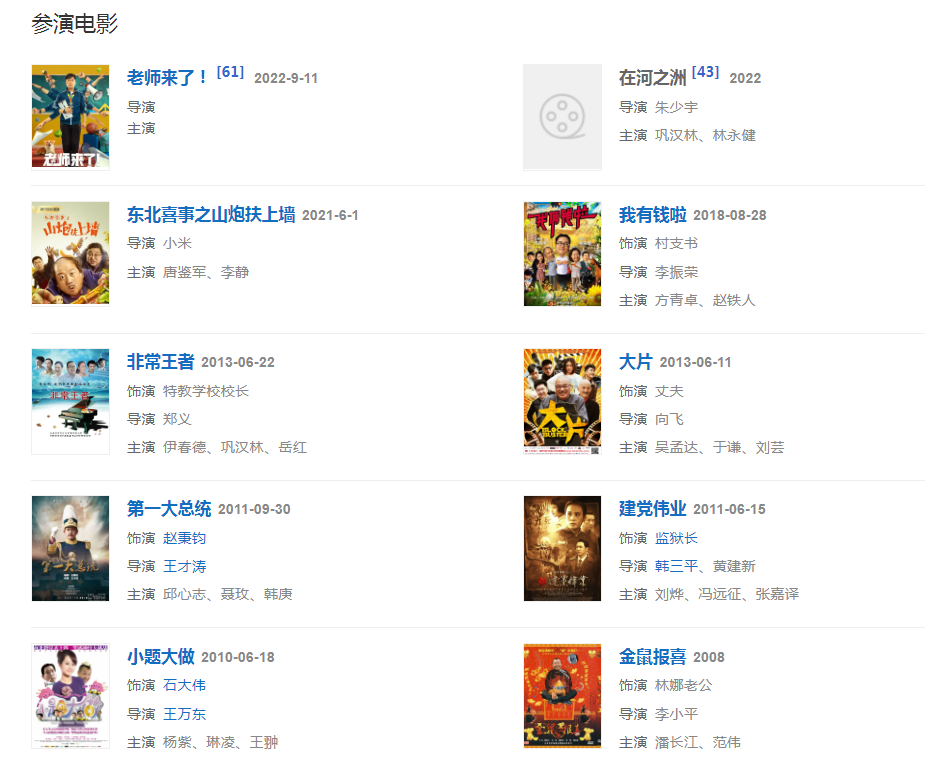 202161日,主演的喜劇電影《東北喜事之山炮扶上墻》在騰訊視頻獨家播出  ;109日,參演的電影《爸爸媽媽別離開我》在上海舉行開機新聞發(fā)布會  ;1021日,參演的電視劇《突圍》播出。