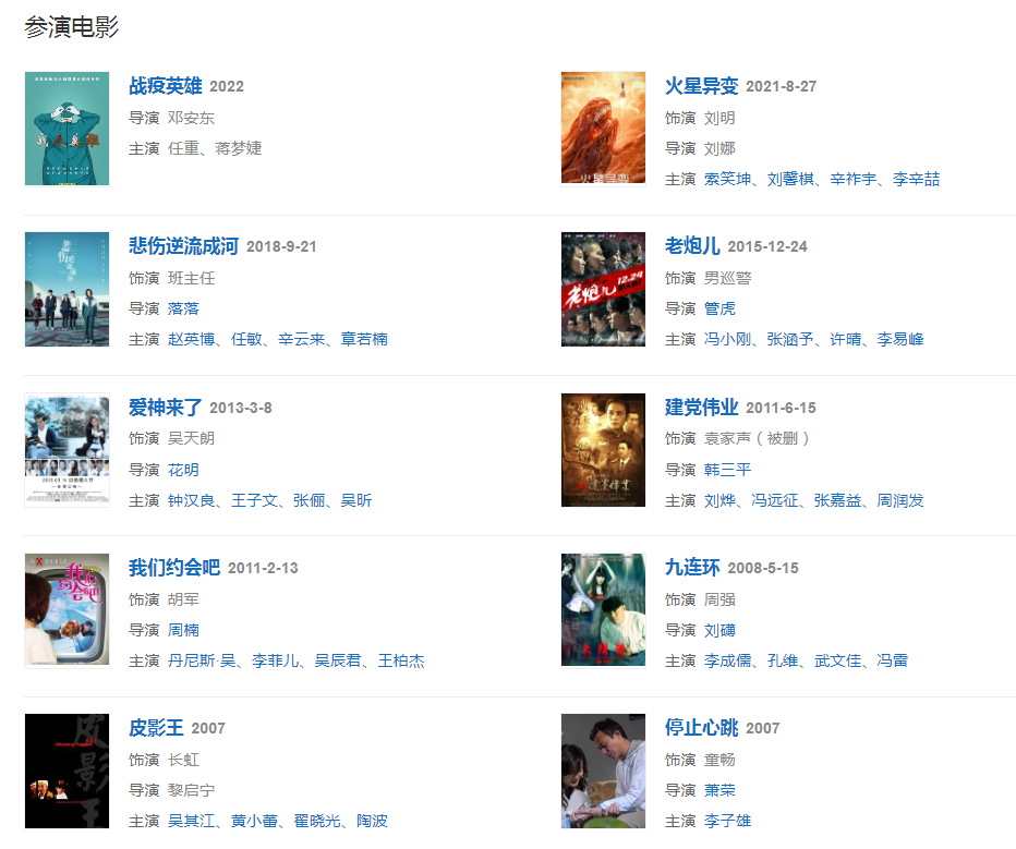 2007年,在劇情電影《皮影王》中飾演男主角長(zhǎng)虹  。