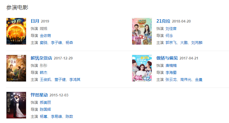 2021211日,參加《2021年中央廣播電視總臺(tái)春節(jié)聯(lián)歡晚會(huì)》,與李現(xiàn)、劉浩存等表演歌曲《奔跑的青春》;212日,參加《2021年北京廣播電視臺(tái)春節(jié)聯(lián)歡晚會(huì)》,并擔(dān)任春晚代言人 ;331日,與吳磊合作主演的古裝傳奇劇《長歌行》播出,在劇中飾演永寧郡主李長歌;720日,與龔俊共同主演的古裝劇《安樂傳》開機(jī),在劇中飾演晉南安樂寨大當(dāng)家任安樂、帝梓元  ; 726日,主演的都市愛情劇《你是我的榮耀》播出,在劇中飾演美貌女明星喬晶晶  1225日,參加脫口秀節(jié)目《2021脫口秀跨年》。