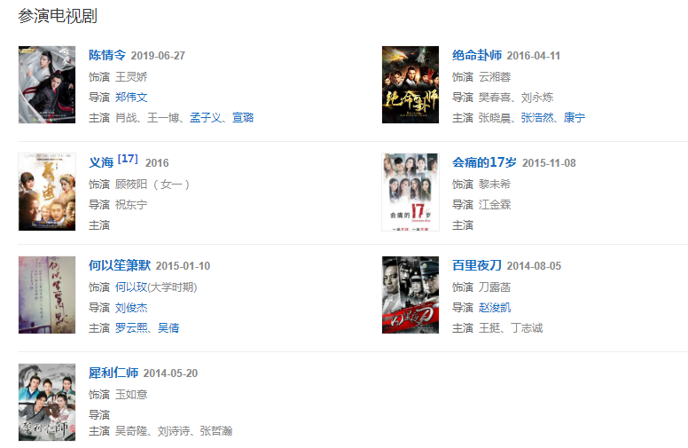 2019年6月17日,參演古裝仙俠劇《陳情令》飾演王靈嬌。