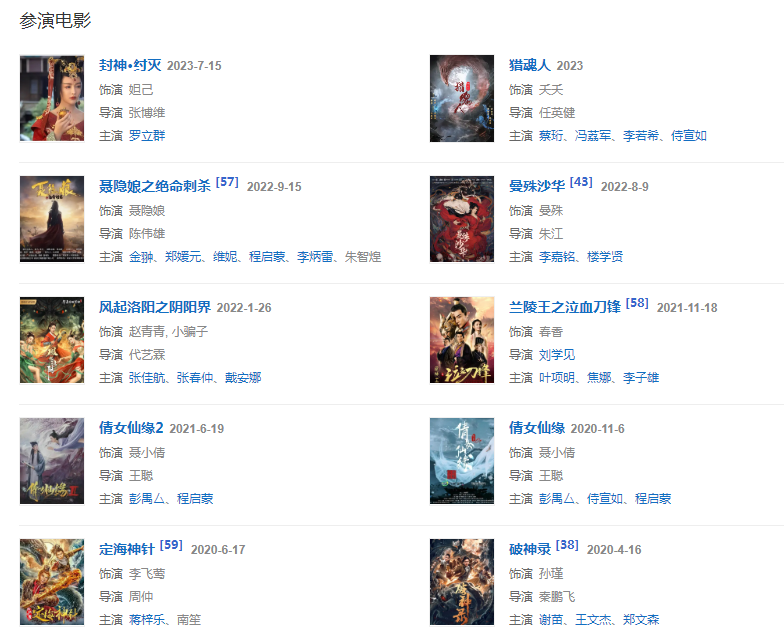 代表作品:楚喬傳、火王之破曉之戰(zhàn)、大夢(mèng)西游4伏妖記、雙世青蛇、辛棄疾1162
