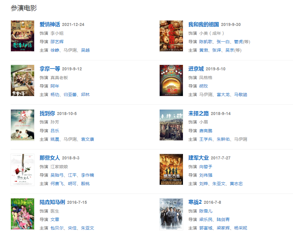 20211124日,與白宇合作主演的電視劇《龍城》開(kāi)機(jī);1224日,擔(dān)任主演的電影《愛(ài)情神話》上映