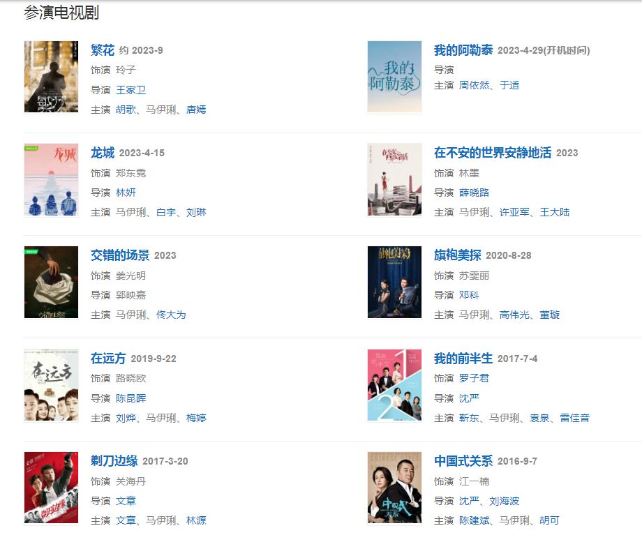 2023年3月3日,網(wǎng)劇《交錯(cuò)的場(chǎng)景》正式官宣由馬伊琍等人領(lǐng)銜主演。4月15日,領(lǐng)銜主演電視劇《龍城》。