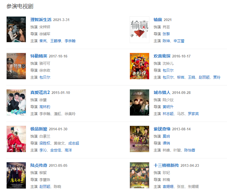代表作品:特勤精英、歡喜密探、刺、城市獵人、真愛謊言2、紫釵奇緣、楊妮妮與李嬌嬌的雙重生活