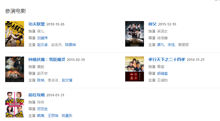 代表作品:幻城、新還珠格格、鐘馗捉妖記、秋官課院之狄仁杰浮世傳奇