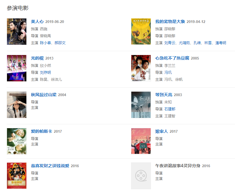 20046月,客串馮鞏自導(dǎo)、自演的喜劇電影《心急吃不了熱豆腐》,飾演李蘭蘭。