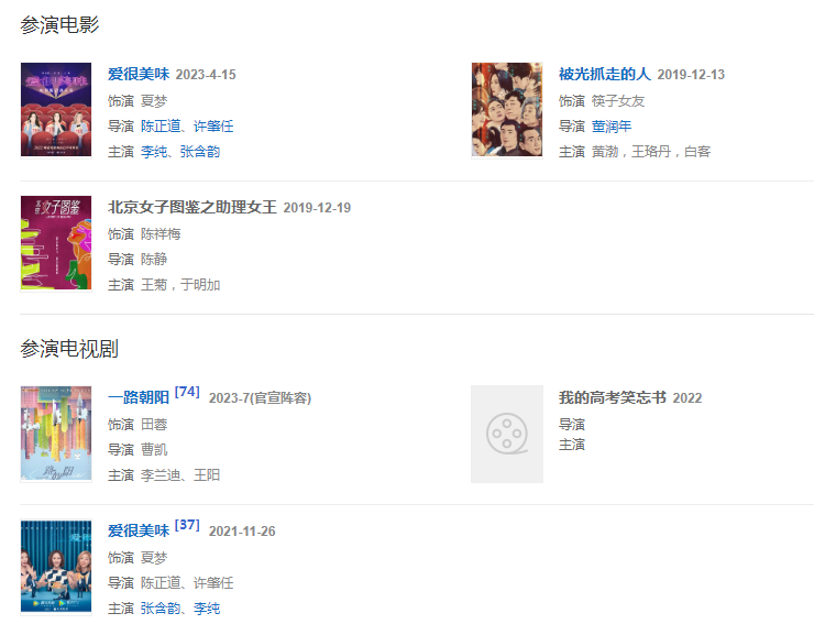 2022228日,參加的輕熟齡戀愛(ài)觀察真人秀《半熟戀人》播出。228日,參加《沒(méi)談過(guò)戀愛(ài)的我》節(jié)目。511日,主演的都市愛(ài)情喜劇片《愛(ài)很美味》開(kāi)機(jī)。