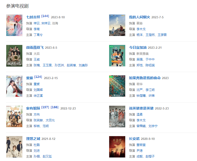 代表作品:且聽鳳鳴、理想之城、我們的新生活、極限17:羽你同行、將夜2、卡路里、仲夏滿天心
