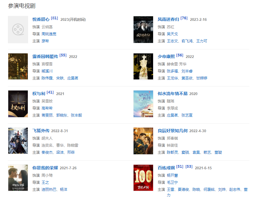 2018年,出演宮廷劇《大明風(fēng)華》 ;同年,她還主演了傳奇劇《長(zhǎng)安諾》。