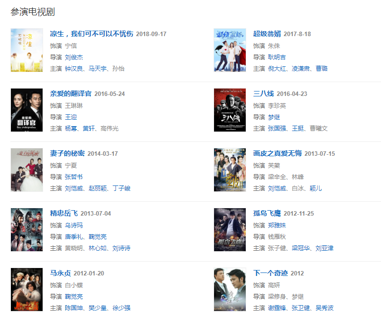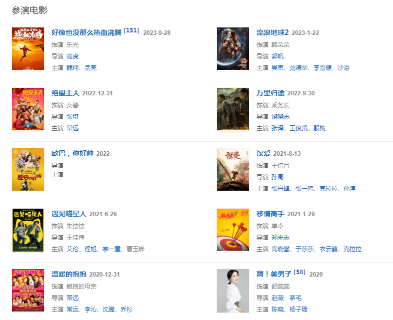 代表作品:夏洛特煩惱、人間·喜劇、超級翁婿、新烏龍院之笑鬧江湖、馬永貞