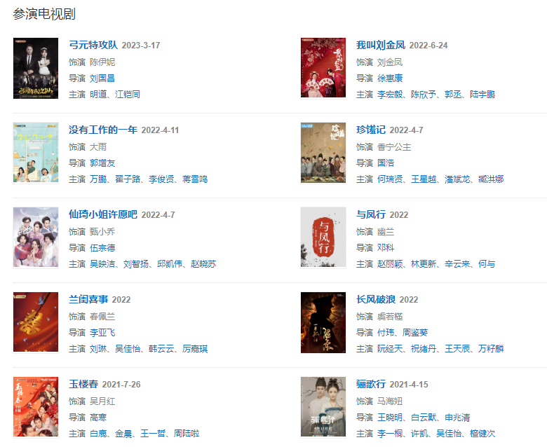 2021年7月26日,參演的古裝合家歡愛情喜劇《玉樓春》將在優(yōu)酷網(wǎng)播出 。
