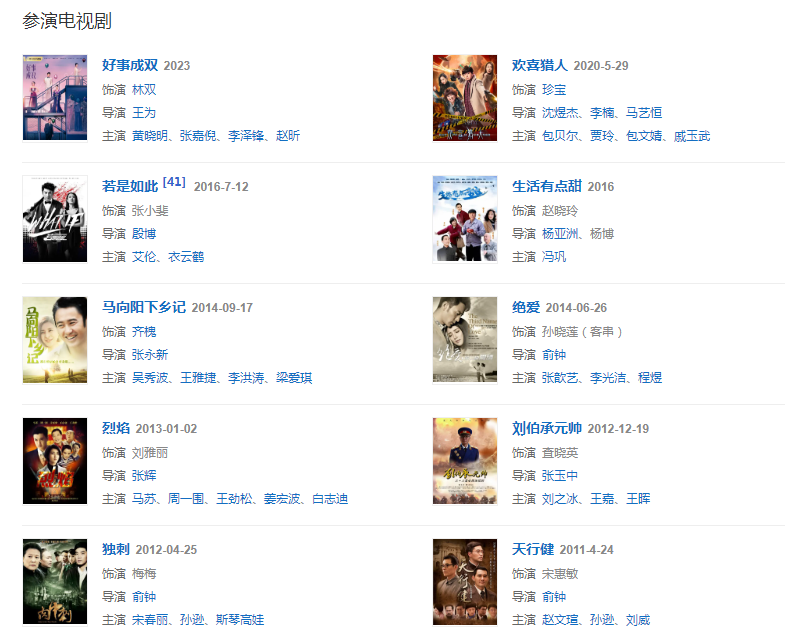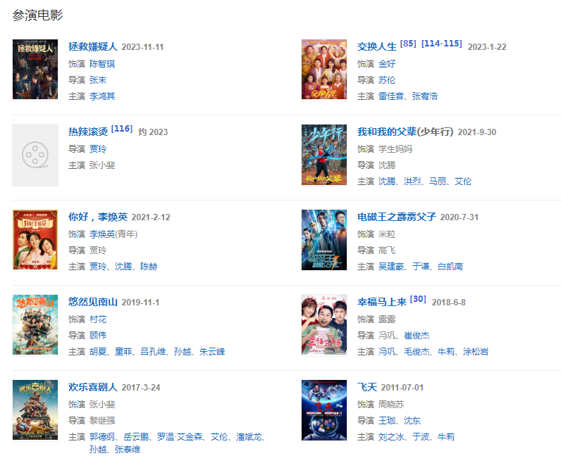 代表作品:烽火歲月、敢死隊、飛天、馬向陽下鄉(xiāng)記、喜劇總動員、歡樂喜劇人第三季、開心劇樂部、你好,李煥英、萱草花