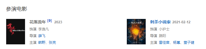 2015年,出演首部電視劇《新邊城浪子》,從而正式進(jìn)入演藝圈。