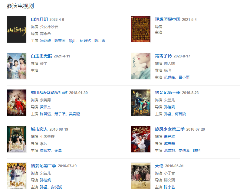 代表作品:蜀山戰(zhàn)紀(jì)2踏火行歌、旋風(fēng)少女2、旋風(fēng)少女、巴啦啦小魔仙之音符之謎、納妾記、櫻桃