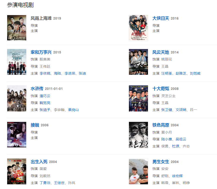 2003年主演電視劇《風(fēng)聲鶴唳》,飾演角色梅玲。