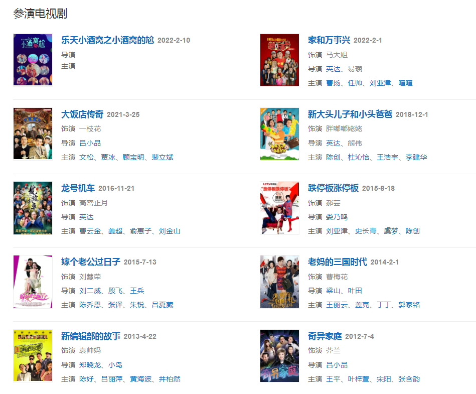 2022117日,主演的情景喜劇《家和萬事興》將于21日(農(nóng)歷正月初一)播出;210日,參演的電視劇《樂天小酒窩之小酒窩的尬》播出。