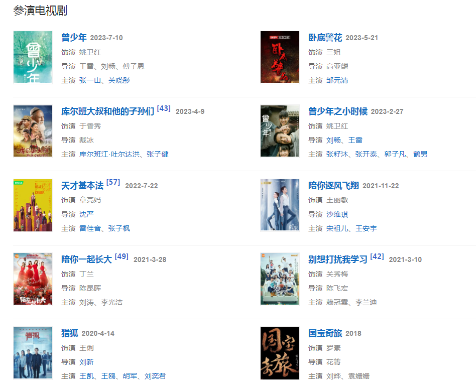 2022年,在歷史電影《張之洞》中飾演張夫人。